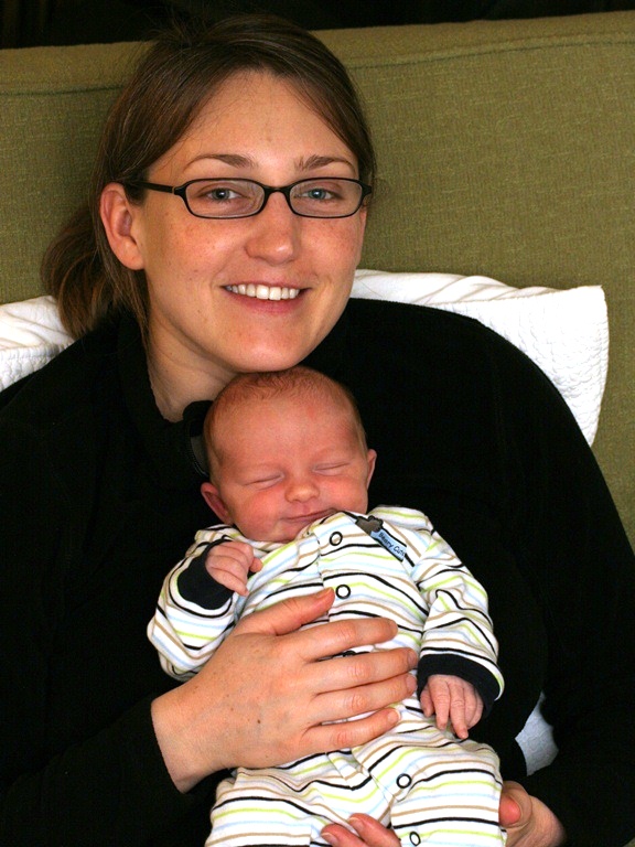 Max weighed 7lbs., 5ozs. and measured 19.5in. Our first family photo, taken in the OR. Daddy and Max. Mommy and Max. Max's mohawk after his first bath. 15 October 2010 |