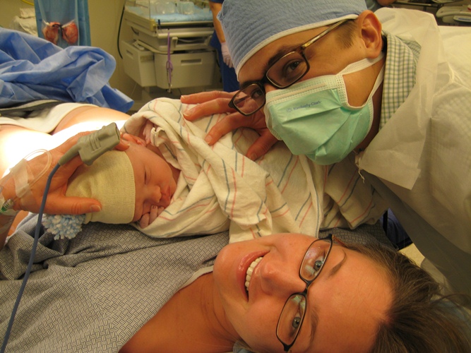 Max weighed 7lbs., 5ozs. and measured 19.5in. Our first family photo, taken in the OR. Daddy and Max. Mommy and Max. Max's mohawk after his first bath. 15 October 2010 |